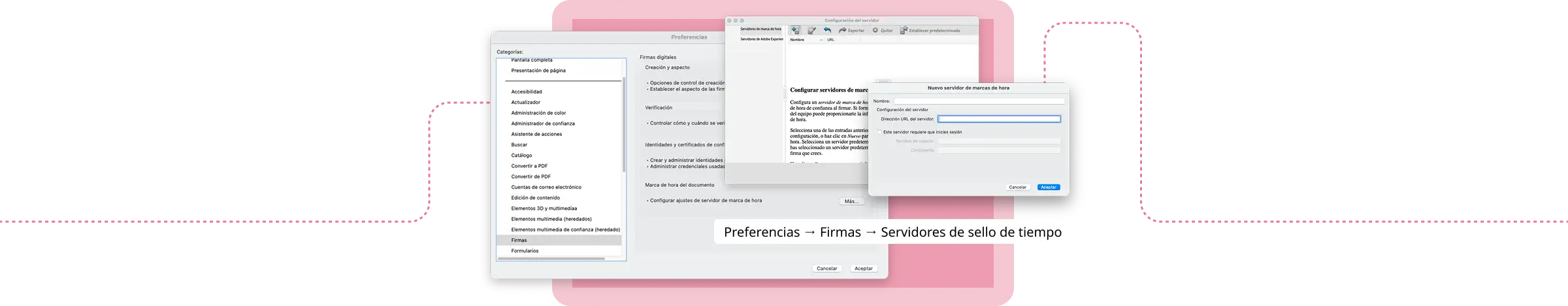 Añade la URL de nuestro servicio, el usuario y la contraseña en la configuración de sellos de tiempo. Este paso solo se realiza una vez.